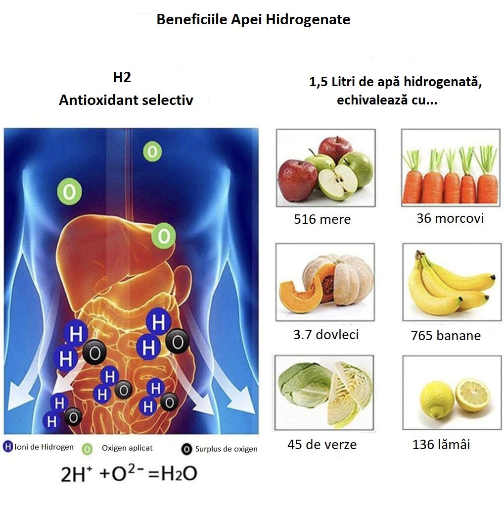 Organismul uman nu poate absorbi eficient hidrogenul din apa pura, deoarece este legat de oxigen, dar atunci cand se adauga hidrogen suplimentar la aceasta molecula, moleculele de hidrogen devin "libere" si mai accesibile organismului.
